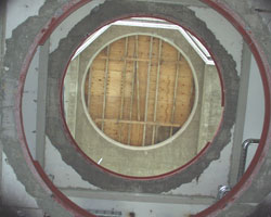 Eingeschnittene kreisrunde Deckenöffnungen für neue Innentreppe über alle Etagen |