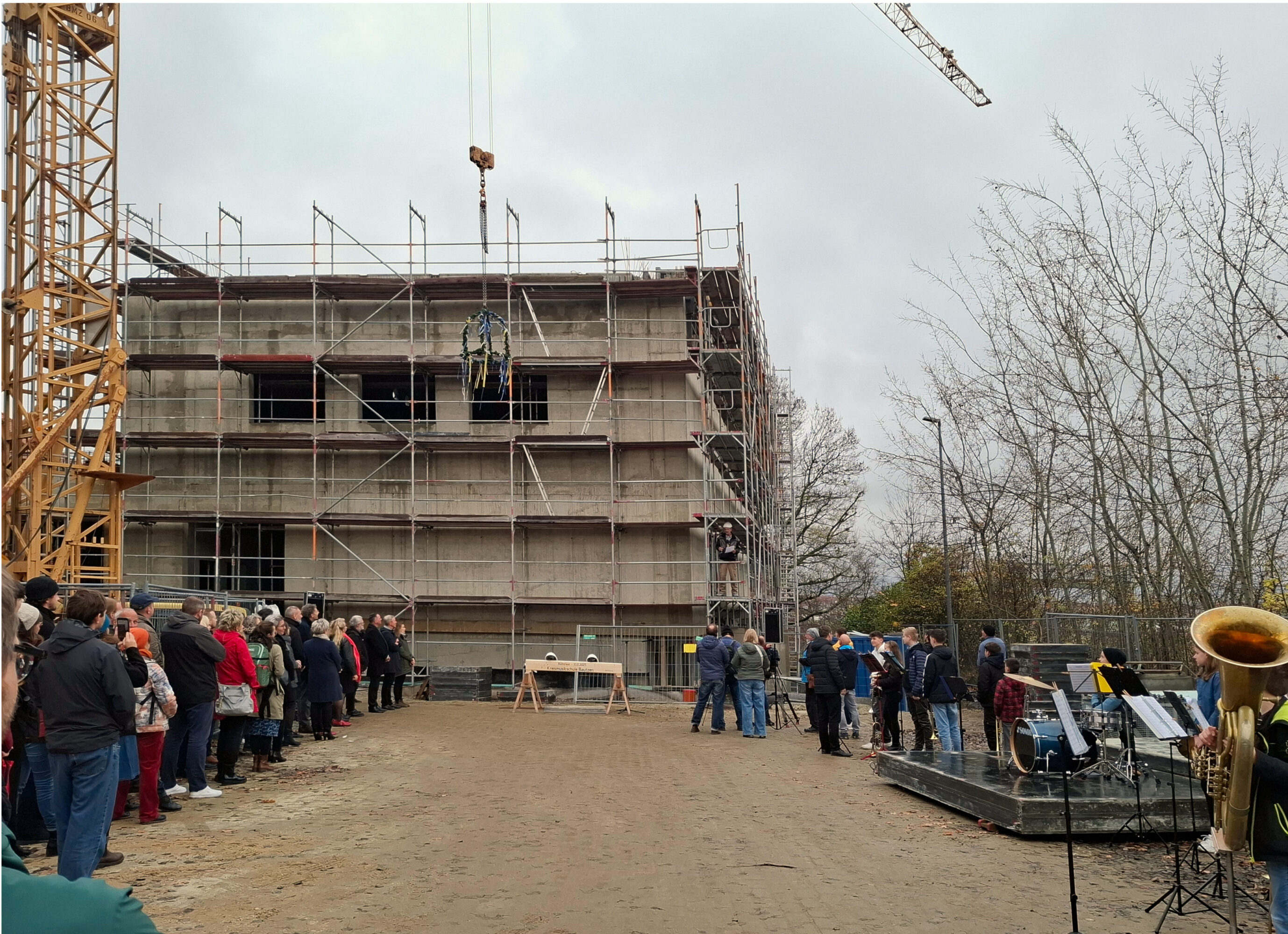 Der Neubau der neuen Kreismusikschule steht und am 10.11.2025 konnte Richtfest gefeiert werden. Neben der Sanierung des angrenzenden Altbaus werden hier neue Räume und Kapazitäten für die Musikschüler geschaffen – für Unterricht und Veranstaltungen.