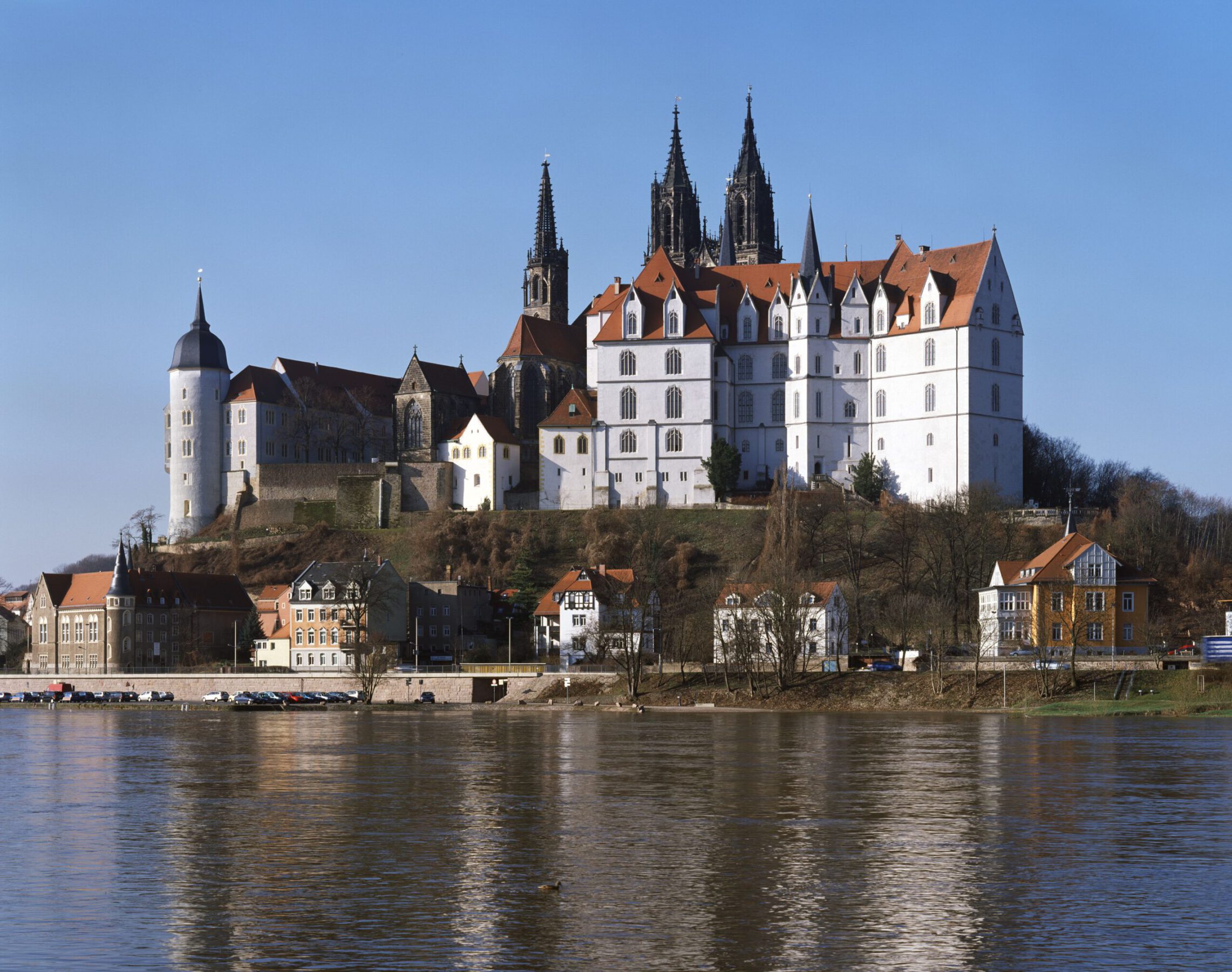 Unter Leitung von Arnold von Westfalen wurde auf dem Burgberg oberhalb der Stadt Meißen 1471 mit dem Bau der Albrechtsburg begonnen, welche in ihrer Grundbausubstanz und Struktur nahezu identisch erhalten blieb. Das Gebäude gründet sich auf Fundamenten von Vorgängerbauten, schiebt sich aber teilweise über diese, in Richtung Tal hinaus. Eine Besonderheit des Gebäudes ist der Verzicht von bis dahin üblichen und notwendigen Strebpfeilern zur Aufnahme des horizontalen Gewölbeschubes. Arnold v. Westfalen verstärkte hingegen die Außenwände zur Gebäudeinnenseite hin, um mehr Auflast zu erhalten, welche die Resultierende des horizontalen Gewölbeschubes in senkrechte Richtung überdrückt, so dass die Standsicherheit gewährleistet ist. Der erste Bauabschnitt mit Südflügel und dem ersten Teil des Mittelbaus konnten 1478 abgeschlossen werden. Bis 1483 wurde der Mittelbau komplett einschließlich Kapellenturm und kleinem Wendelstein, bis 1489 Westflügel und Nordflügel in seiner äußeren Gestalt errichtet. Nach einer Pause erfolgten von 1520-1525 der Innenausbau einschließlich Deckeneinwölbung über dem 2.OG. Dem folgten Zeiten unterschiedlicher Nutzungen, des Leerstandes, der Verwahrlosung und Schädigungen während des 30-jährigen Krieges, bevor das Gebäude von 1710-1863 die Porzellanmanufaktur beherbergte. Diese Zeit war geprägt von einem großen Brand 1773, Schädigungen durch Produktion bzw. Produktionsgerät und sparsame Instandsetzungen. Von 1864-1870 erfolgten umfangreiche Sanierungen, um das Gebäude für die Öffentlichkeit als Museum zugänglich zu machen. Bis Anfang der 90-er Jahre des letzten Jahrhunderts wurden nur notwendigste Sicherungsmaßnahmen durchgeführt, so dass das ab ca. 1998 das Gebäude abschnittsweise grundhaft saniert wurde. Nun sind wieder alle Geschosse für eine zeitgemäße und bauwerksverträgliche Museums- und Veranstaltungsnutzung zugänglich.