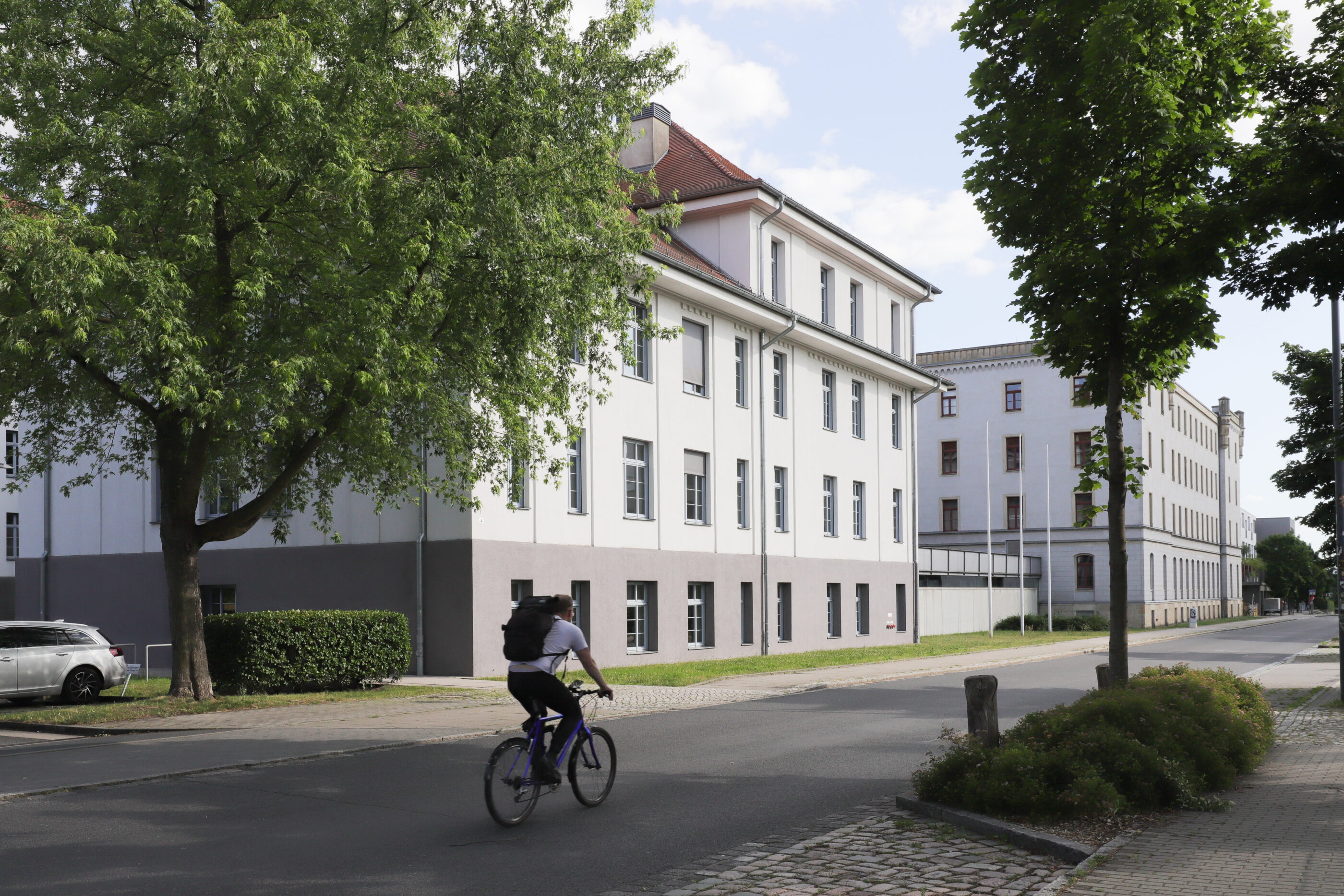 Die „Große Kaserne“ wurde etwa um 1910 erreichtet. Die sehr schlanken Stahlbetondecken mit Vouten an den Zwischenauflagern und Unterzüge mit stark variierenden Abmessungen entsprechen den Bemessungs- und Ausführungsregeln dieser Anfangszeit des Stahlbetonbaus. Neben feuchtebedingten Schädigungen infolge undichten Daches und unsachgemäßer Nutzung sowie fehlender Baupflege wies das Gebäude Schäden und konstruktive Mängel auf. Nach erfolgtem Umbau beherbergt es das zentrale Foyer mit Aufzügen, mehrere Verhandlungssäle, das Archiv, die Kantine, Büroräume sowie große Technikzentralen.