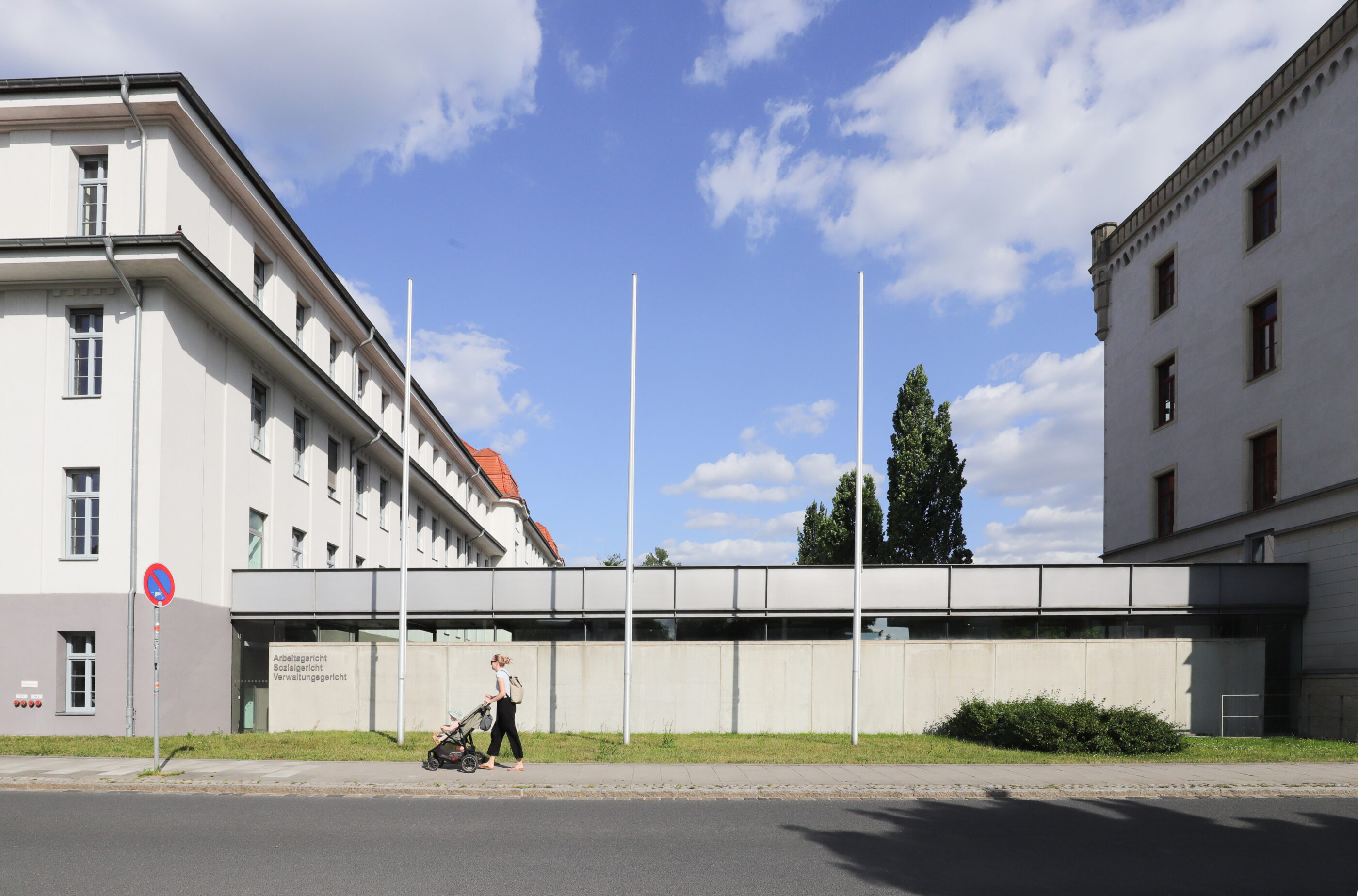 Die „Große Kaserne“ wurde etwa um 1910 erreichtet. Die sehr schlanken Stahlbetondecken mit Vouten an den Zwischenauflagern und Unterzüge mit stark variierenden Abmessungen entsprechen den Bemessungs- und Ausführungsregeln dieser Anfangszeit des Stahlbetonbaus. Neben feuchtebedingten Schädigungen infolge undichten Daches und unsachgemäßer Nutzung sowie fehlender Baupflege wies das Gebäude Schäden und konstruktive Mängel auf. Nach erfolgtem Umbau beherbergt es das zentrale Foyer mit Aufzügen, mehrere Verhandlungssäle, das Archiv, die Kantine, Büroräume sowie große Technikzentralen.