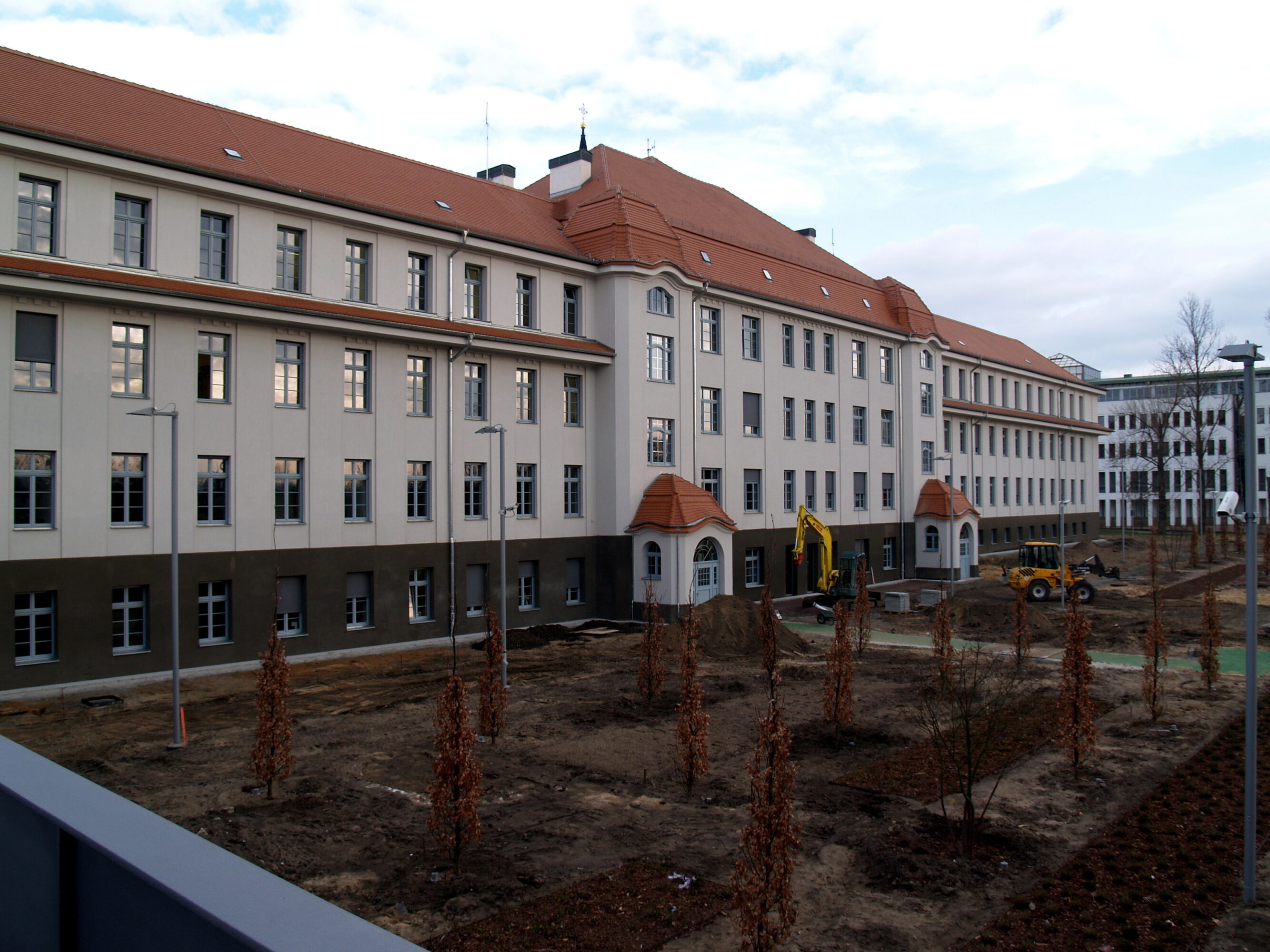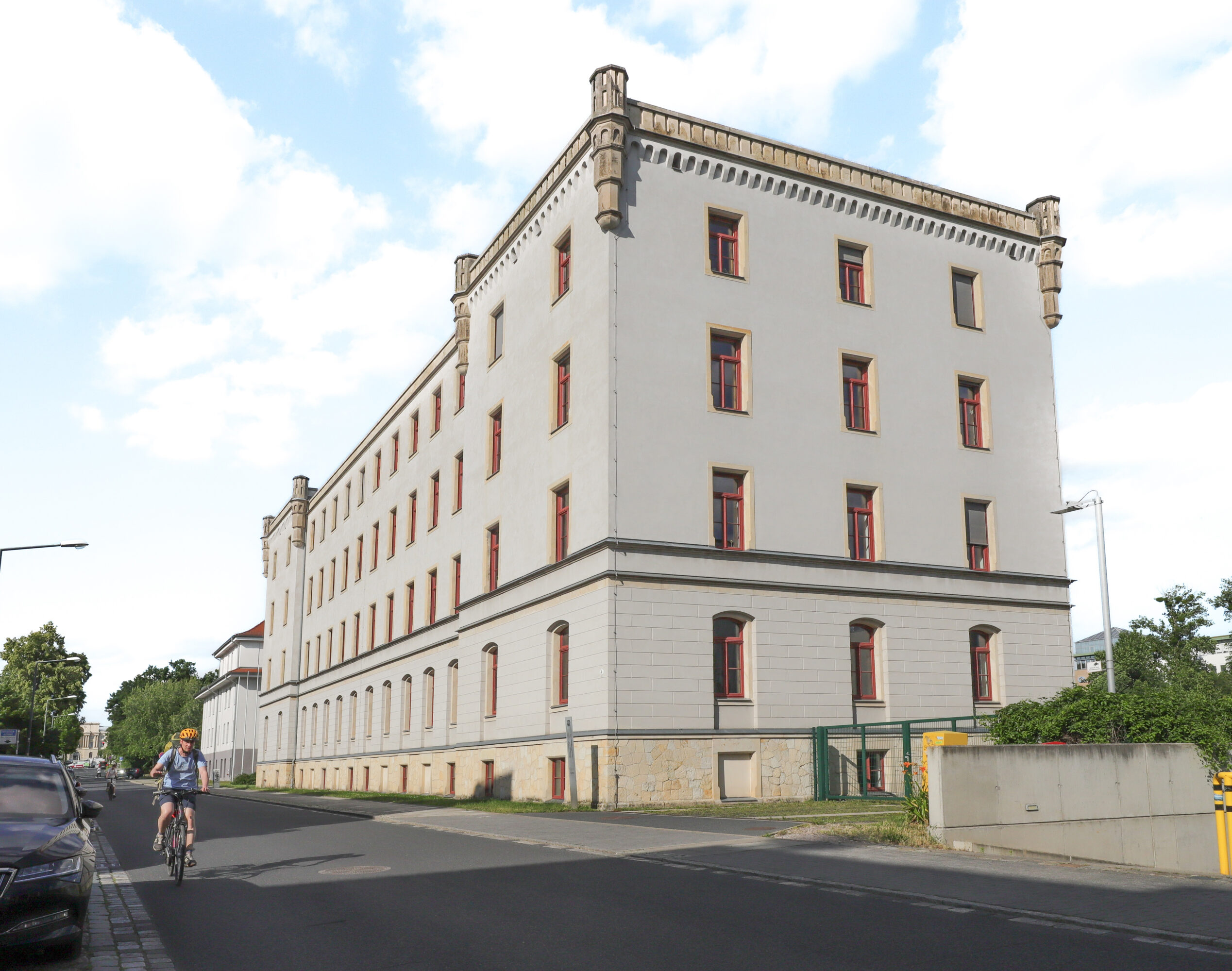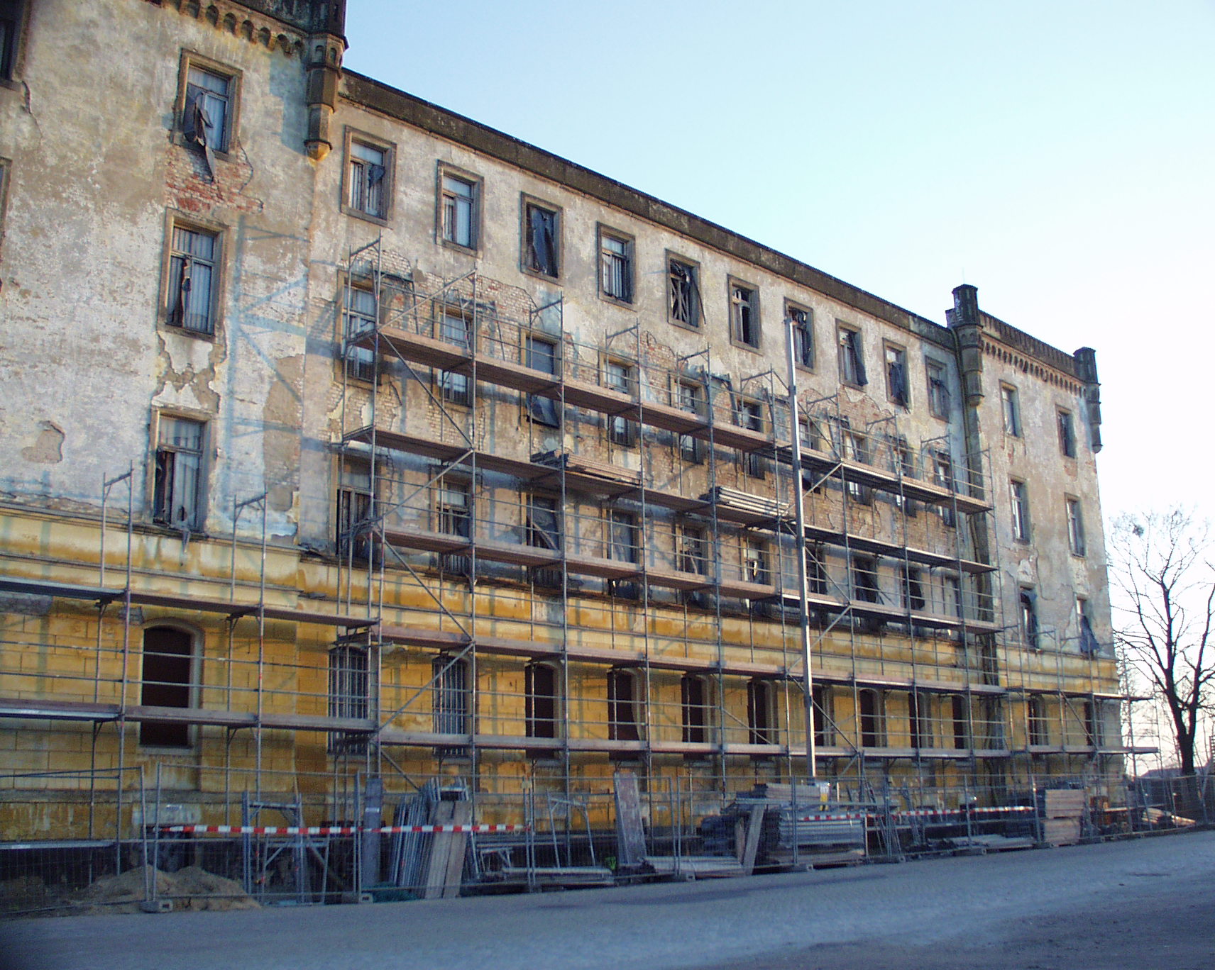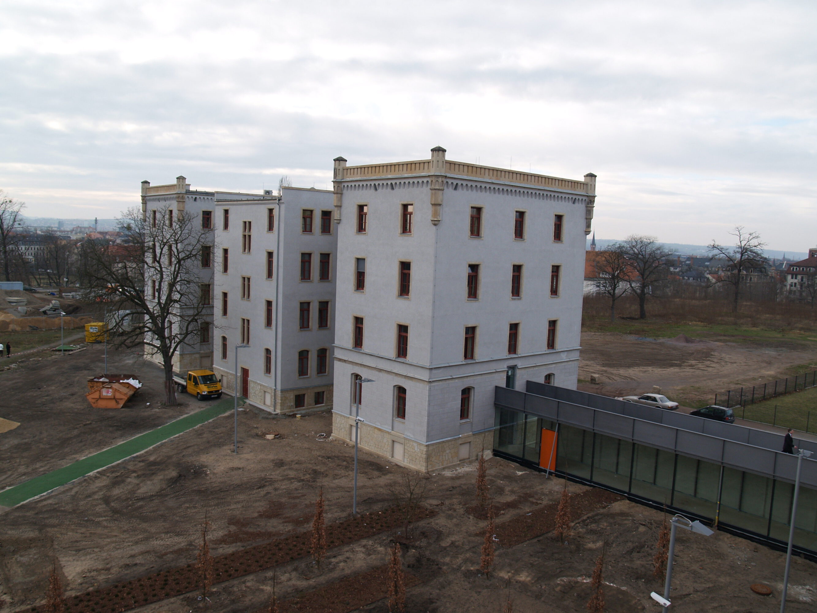 Die „Kleine Kaserne“ des ausgehenden 19. Jahrhunderts – ein sehr solider Mauerwerksbau mit Kappen- und Holzbalkendecken – wurde in der Vergangenheit im Inneren umgebaut. Neben fehlender Baupflege während der Nutzung verwahrloste das Gebäude bis zu seiner Notsicherung 2001/2002 und wies demzufolge starke Schädigungen insbesondere durch den Echten Hausschwamm auf. Neben der grundhaften Sanierungen mussten Decken, Fußböden und partiell auch Gründungsbereiche ertüchtigt werden, um den Ansprüchen der neuen Nutzung gerecht zu werden. Ein Fluchttreppenhaus und ein Aufzug wurden im Gebäudeinneren eingefügt.
