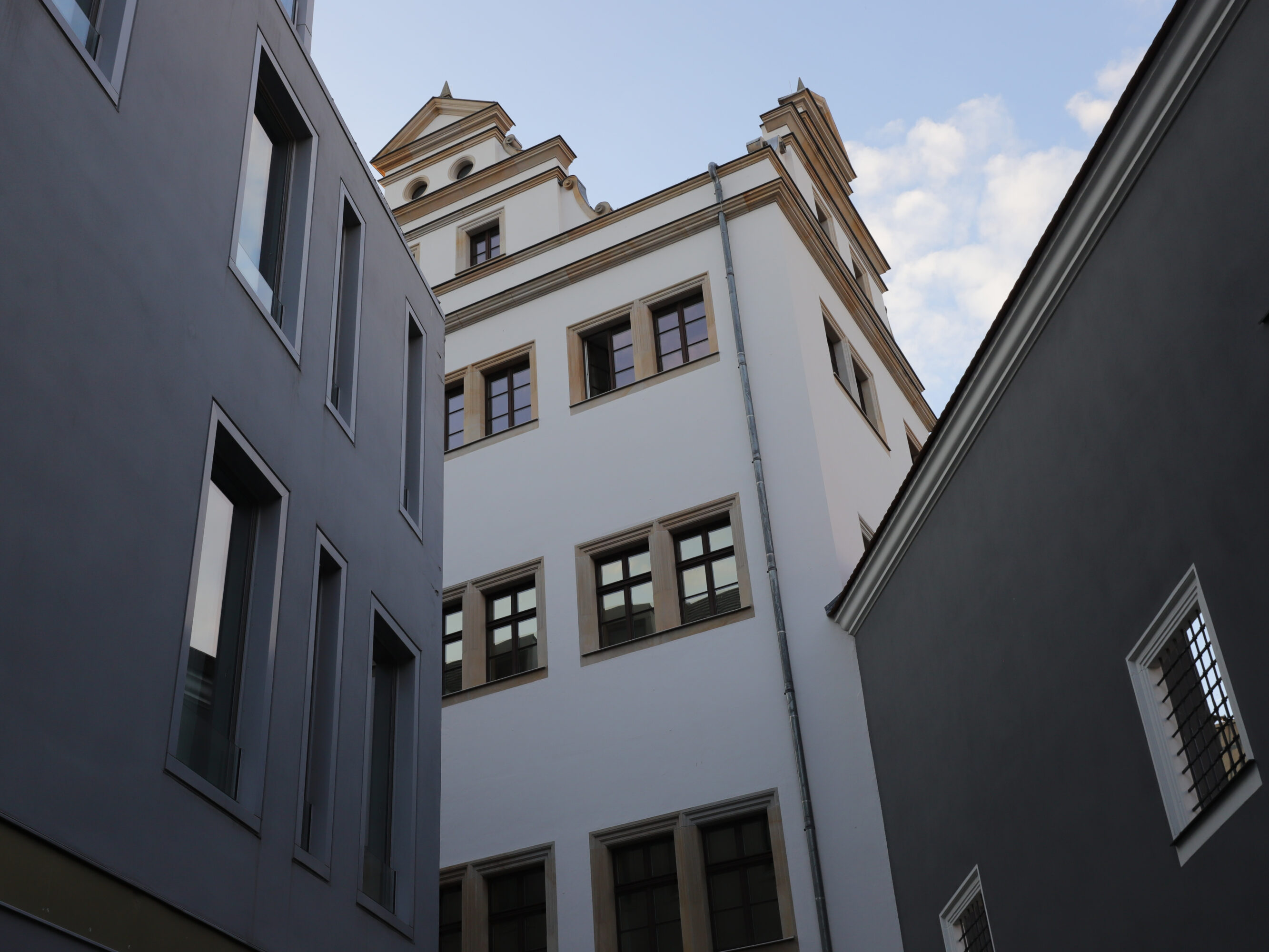 Das Kanzleihaus, ältester Verwaltungsbau Dresdens, 1565-67 von Hans Irmisch erbaut brannte 1945 aus und wurde danach zu großen Teilen abgebrochen. Nach dem Wiederaufbau dient es dem Bistum Dresden-Meißen als Bischofssitz, beherbergt Wohnungen, Gemeinderäume, Gewerbe, Veranstaltungssaal im EG sowie die historischen Tonnengewölbe und eine Tiefgarage im Untergeschoss.