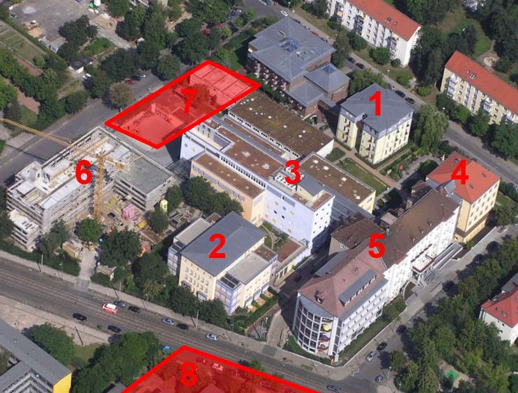 Verschiedene Bauten des Dresdner St. Joseph-Stiftes seit 1996