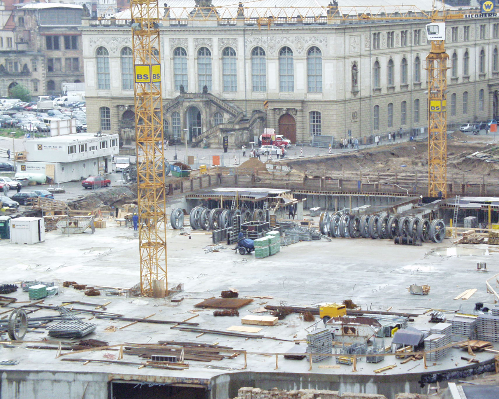 Die auf Erfahrungen des Bauens im Dresdner Stadtzentrum beruhende Projektidee zum Bau einer Tiefgarage als zentrales Erschließungsbauwerk unter dem Neumarkt wurde Ende 1999 geboren und zielstrebig weiterentwickelt, so dass das Bauwerk in den Jahren 2003 und 2004 durch einen Investor in Verbindung mit dem zukünftigen Parkhausbetreiber errichtet wurde. Die Betreiberwünsche nach einem hellen, einladenden und übersichtlichen Parkhaus waren neben anderen Faktoren mitbestimmend für den Tragwerksentwurf.